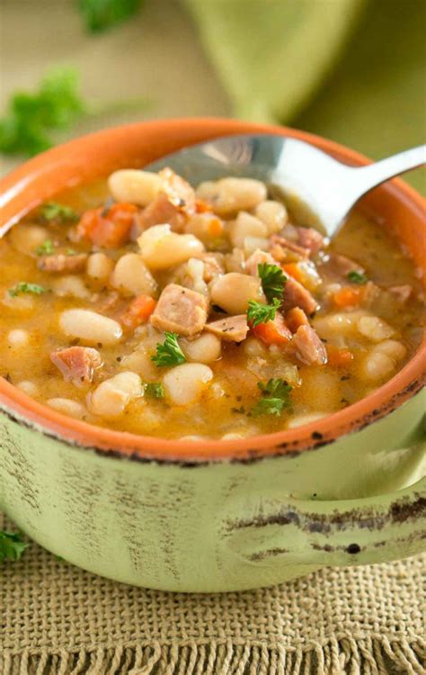 Apr 26, 2019 · drain beans the next day and return to the pot. Just a little bit of ham adds savory flavor and protein without … Nov 13, 2021 · beans, pumpkin, tomatoes, ham, onions, celery, oil, kale, garlic, thyme, bay leaf, pepper, sage. Get full nutrition facts and other common serving sizes of bean and ham soup (home recipe) including 1 oz and 100 g. Calories, carbs, fat, protein, fiber, cholesterol, and more for white bean & ham soup ( golden corral). Aug 21, 2007 · there are 225 calories in 1 cup of bean and ham soup (home recipe). Simple and easy white bean soup with veggies and ham. Full nutritional breakdown of the calories in white beans and ham based on the calories and nutrition in each ingredient, including ham, regular (11% fat), beans, great northern, dry (1/4 cup), brown sugar, onions, raw, swanson chicken broth 99% fat free and the other ingredients in this recipe.